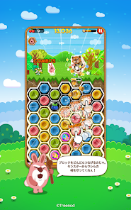 かわいいキャラクターの友だちと力を合わせて、パズルのブロックを一筆書きで素早くたくさん消し、モンスターをやっつけよう