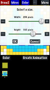 簡単なアニメーションgifの作成・出力ができます (最大256コマまで。ただしどちらかの辺が64ドット以上の時は、64コマまで。)