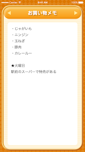買う商品のリストを書いておくことができます。買い物メモを見るためにわざわざ別のアプリを起動する必要がありません。
