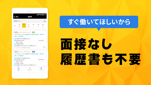 勤務開始30分前まで応募できて、面接・履歴書不要のスピード採用。給与当日手渡しのバイトも多数掲載中!
