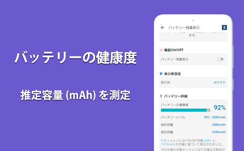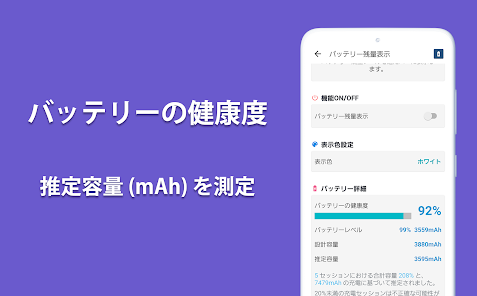 充電データからバッテリーの推定容量(mAh)と健康度を推定します。