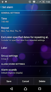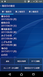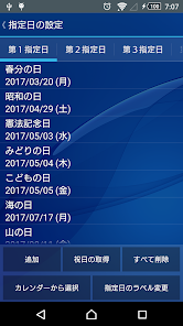 ■日本の祝日に対応。繰り返し有効時でも指定日に設定された祝日はアラームを無効にすることができます。また指定日はカスタマイズすることが可能です。祝日や長期休暇の際にアラーム設定をOFFに切り換えなくてもアラーム鳴らさないようにできるため、休み明けにアラームをONに切り換えるのを忘れて寝坊、などという失敗を防ぐことができます。