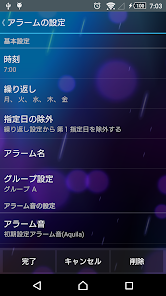 ■繰り返しのアラームを次回のみ1回スキップする機能を搭載しています。いつもより早く起きてしまった時や予定が変更した場合等にアラームをOffに切り替えることなくスキップすることが出来ます。(アラームリスト画面にて各アラームを長押し)
