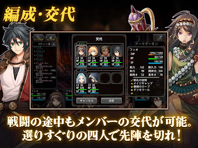 異なった特性やスキルを持つ最大8人のメンバーたち。戦略的に4名のパーティを配置してダンジョンに挑戦しよう。