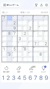 キラーナンプレはクラシックなナンプレよりちょっと難しいかもしれませんが、心配する必要はないです初心者から上級者まで様々な難易度が用意されていますゲーム中にはメモを添削する機能が付きます。間違えましたか心配なことはないです。元に戻す機能とヒント機能があります