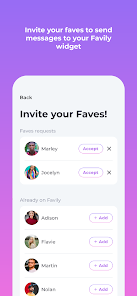 私たちの使命は、あなたが最も気にかけている人々の日々を明るくすることで、常に世話をすることです.このウィジェット アプリは、毎日の使用のために Favily コミュニティと共同で作成されました。私たちの目標は、毎日良い雰囲気を共有し、お気に入りの顔に笑顔を浮かべるお手伝いをすることです.