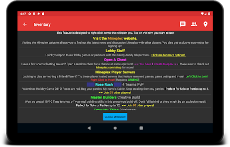• Access and click your inventory (useful to navigate in some servers)