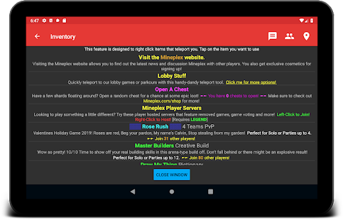 • Inventory: click on the items in your inventory to teleport across the server!