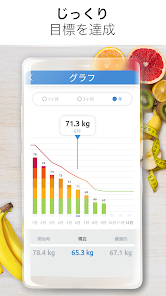 当アプリのグラフを見れば、知りたいことがほんの数秒でわかります。1か月ビューでは、食事療法が体重にどんな効果をもたらしたかを見ることができ、3ヵ月または1年ビューでは、より長い期間での進歩をモニタリングおよび追跡することができます。『理想の体重』は、目標の体重への達成を可能にする最も簡単で迅速なメソッド。これを使えば、体重を短期間でストレスなしに減らすことができるでしょう。