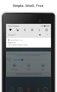 スピーカーブースト:ボリュームブースター&サウンドアンプ3Dのスピーカーの音量を後押しするための簡単な、小さな、無料アプリです。より大きな映画、より大きなゲームのための特別な大音量ブースターとして、そして音声通話オーディオおよび音楽ブースターとして有用です。また、ヘッドフォン用の極端なボリュームブースターと同じくらい素晴らしい作品。