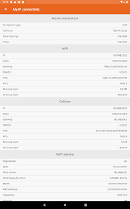 'My connectivity' - displays current connectivity status, public IP, DNS servers, Wi-Fi and cellular network information.