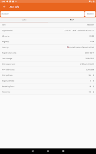 'ASN info' - displays quick statistics about any ASN around the globe, with detailed information about the currently held public IP address space, estimated service area with map visualization and adjacent connections to other ISPs.
