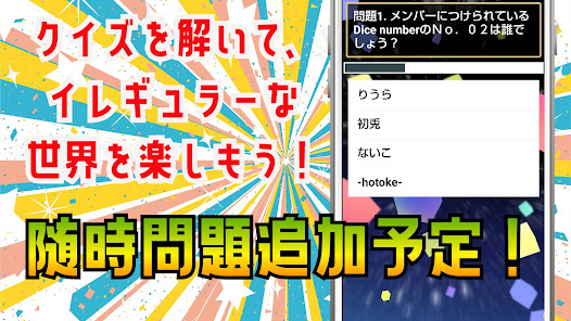 大人気グループ 「いれいす(イレギュラーダイス・irregular dice) 」に関するクイズアプリです。