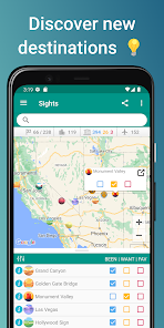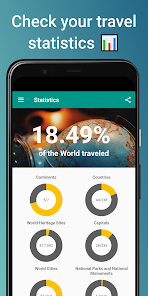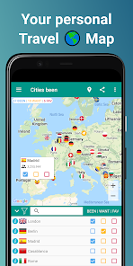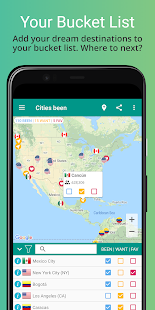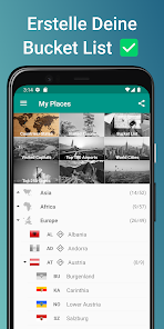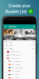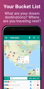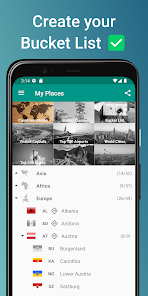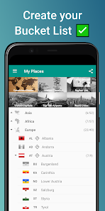 アプリは、タグ付けされた都市に基づいて、訪問したすべての国と州/県/地域のリストを自動的に生成します。また、個人のバケットリスト(まだ訪問する予定のあるすべての場所と世界中のお気に入りの場所)を追跡するのにも役立ちます。