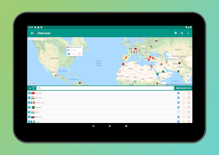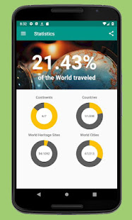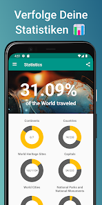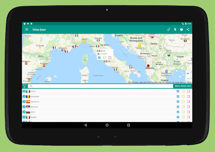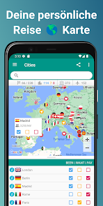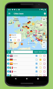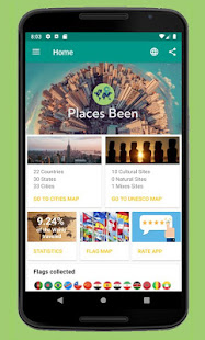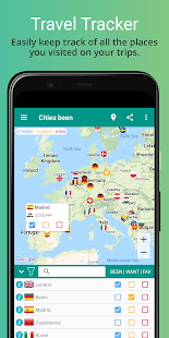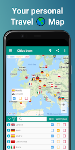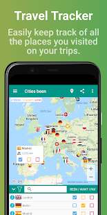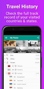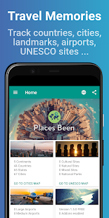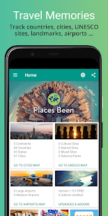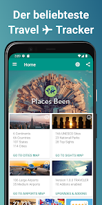 •Places been Inでは、都市にタグを付け、アプリが自動的に訪問した国を追跡します。