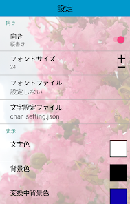 Androidでは、縦書き文字が出力できない為、横書き文字を変換して表示しています。