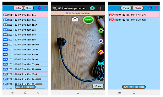 USBカメラ(内視鏡)、任意のIPカメラ、携帯電話のカメラを同じアプリで使用できます。