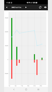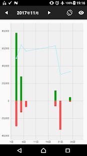 カレンダー下部の月間・年間・累計エリアをタップすると、項目別のグラフが表示されます。
