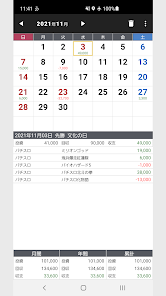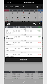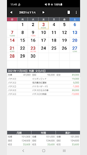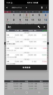 カレンダーの日付を長押しすると、収支の登録・変更・削除が行えます。