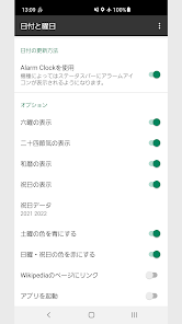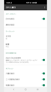 Alarm Clockを使用しない場合は、電池の最適化をしないアプリに「日付と曜日」を登録する必要があります。
