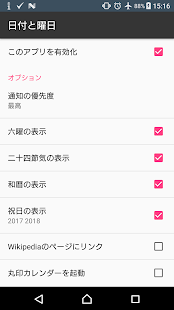 六曜、二十四節気、和暦、日本の祝日に対応。