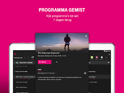 Met T-Mobile TV Anywhere kijk je overal in de EU naar je favoriete programma’s, series en films. Je hoeft geen TV-moment meer te missen. Met TV Anywhere kun je pauzeren en zelfs tot zeven dagen terug kijken. Zo kijk je TV waar, hoe en wanneer je wilt!