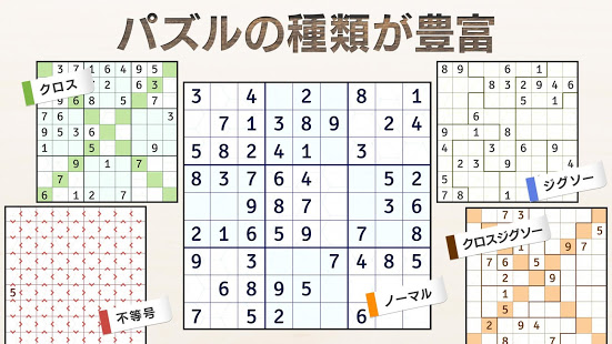 毎日追加される問題には、ノーマルナンプレだけでなく、クロスやジグソー、不等号などの少し変わったナンプレもございます。