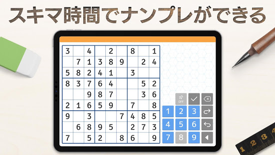3×3のブロックに区切られた9×9の正方形の枠内に1〜9までの数字を入れるパズルゲームです。