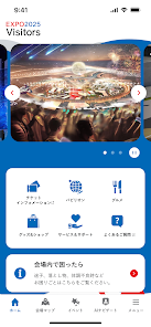 会場マップ、パビリオンやイベントの最新情報などを提供します。