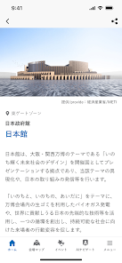 会場内の様々な公式参加者パビリオンやシグネチャーパビリオン、企業パビリオン等の情報を閲覧することができます。