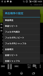 ・リピート(単曲、フォルダ内リピート、全曲リピート)