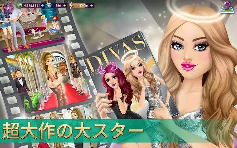 夢は映画スター大女優を目指そう衣服やファッションスタイル、ヘアスタイルやメイクまで、アバターを自分好みにカスタマイズして、魅力たっぷりの映画スターになろう華やかにまたはカジュアルに着せ替えて、みんなの目をくぎ付けにしよう