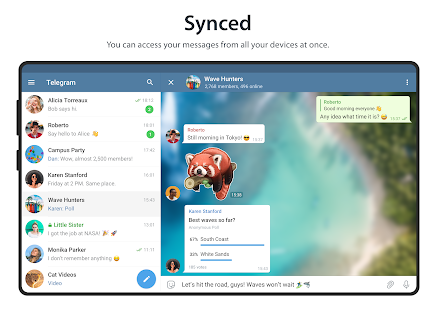 高速: Telegram は市場で最速のメッセージング アプリであり、世界中のデータ センターの独自の分散ネットワークを介して人々を結び付けます。
