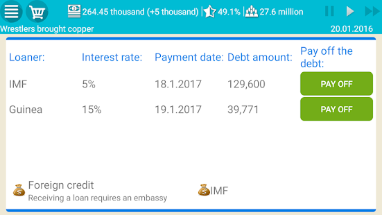 • 大使館を建設し、商業および防衛協定を締結し、IMFから融資を受けて国を発展させましょう