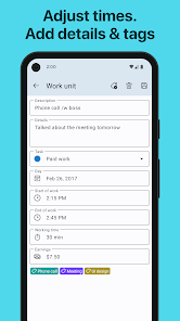 勤務時間を簡単に追跡 - 整理、分析、エクスポートします。フリーランサー、時給労働者、従業員、または自分の勤務時間を追跡したい人に最適です。