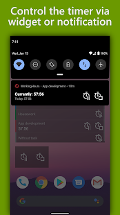 • アプリを開かずに作業時間を開始/一時停止/停止 - ウィジェットと通知を使用
