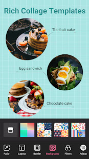 *お気に入りの写真グリッドを選択したり、フィルター、背景、ステッカー、テキストなどを使用してコラージュを編集したりできます。