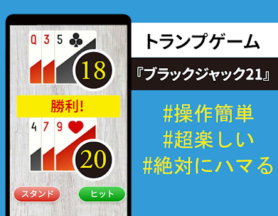 数字を21に近づけるために「ヒット」もう一枚カードを引くするか、スタンドしてカードを引かずにその時点の点数で勝負するかを選べる。