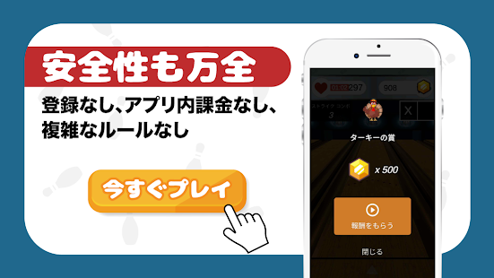 ・ボウリングストライクは完全無料です。アプリ内課金や購入は必要ありません。