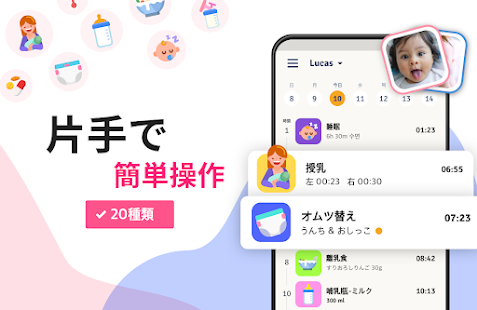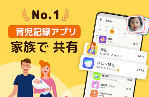 - 赤ちゃんのお食事、オムツ替え、睡眠などの記録をパートナーや家族とシェア