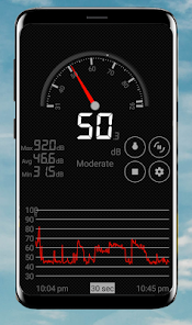 このサウンドメーターアプリでは、環境ノイズレベルを測定し、数時間にわたってプロットすることができます。