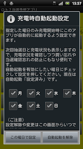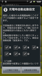 「自動起動設定」ボタンを押すと、「充電時自動起動設定」画面が表示されます。
