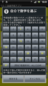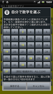 すべて自分で数字を選びたい場合は、予想が表示されていない状態で「自分で選ぶ」ボタンを押して、数字を7個選択して保存すればOKです。