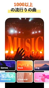 1000以上の高品質の曲を含む、音楽付きの動画作成。