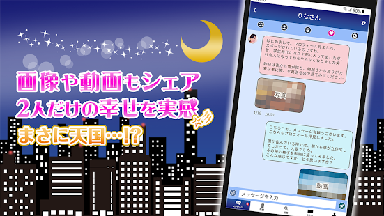 2人だけの個人チャットで自由な会話を楽しめます!簡単な設定のみで即スタートでき、理想のパートナーを探したあとは誰にも邪魔されない秘密の会話・情報交換・写真や動画等をシェアして盛り上がれるチャット機能が充実!