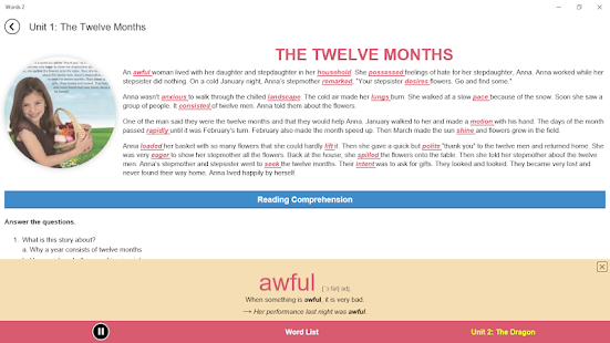 Illustrations for each target word are provided to help learners visualize the word as it is being used in the example sentence. These word/image associations aim to help students grasp the meaning of the word as well as recall the word later. It should be noted that words have more than one grammatical category. However, this series focuses on the word’s most common form. This is mentioned to remind learners that just because a word is labeled and utilized as a noun in this series does not mean that it can never be used in another form such as an adjective. This series has simply focused on the word in the form that it is most likely to be expressed.