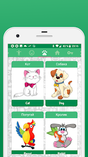 The application contains cards with the most necessary knowledge for a young child - the basic shapes, colors, main items and more.