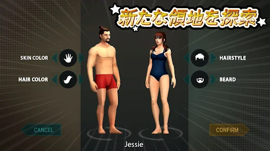 ■自分のキャラクターを作成して、周りを見渡しましょう。避難所の近くには危険度が異なるいくつかのロケーションがあります。この場所で集めた資源を使って、生き残りに必要なものすべて、家や衣服、武器、そして万能車まで作り出すことができます。